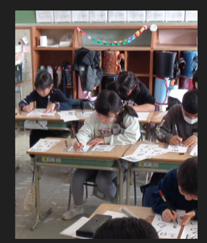 校内書きぞめ競書会が行われました。2年生は、筆で書くのではなく、フェルトペンで書きます。みんなお手本をしっかり見て、一生懸命書いていました。最初とくらべてみんなとても上手になりました。