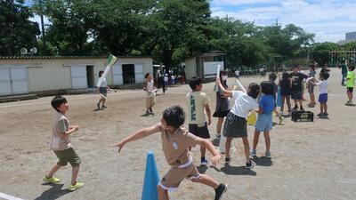 それに向けて、本校の課題である投力アップのため、今週いっぱい25分休みに、校庭で投力パワーアップコーナーを実施しています。参加児童は、5・6年の体育委員も丁寧に教えてもらいながら、体力アップに努めています。