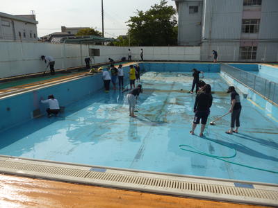今年は、例年とは違い、教員だけでのプール清掃でした。