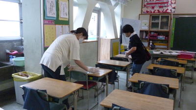 学校応援団、保護者、地域の皆様には、日頃より本校の教育活動にご尽力いただきありがとうございます。本日、夏休み前日まで、毎日、教室の消毒作業を実施していただきました。心より感謝申し上げます。ありがとうございました。