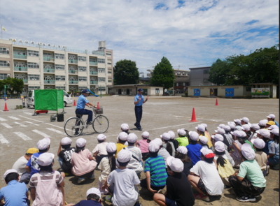 自転車を運転するときに気を付けること、安全点検の仕方を講師の先生やママレンジャーをはじめとした地域の皆様に教えていただきました!安全点検の合言葉は「ぶたべるさはら!」